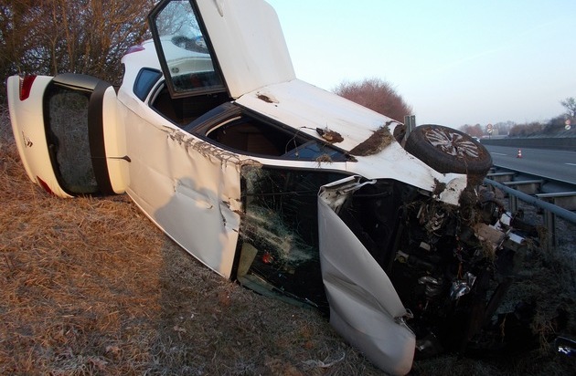 Kandel; Am 19.02.2017 befuhr um 07:30 Uhr ein französischer Verkehrsteilnehmer mit seinem PKW die BAB 65 von Landau nach Karlsruhe. Vor der Anschlussstelle Kandel-Nord kam der 33-jährige Fahrer in einer Linkskurve von der Fahrbahn ab. Der mit fünf Personen besetzte PKW überschlug sich im Straßengraben und kam seitlich zum Liegen. Die Insassen, darunter drei Kleinkinder konnten sich unverletzt aus dem Fahrzeug befreien.