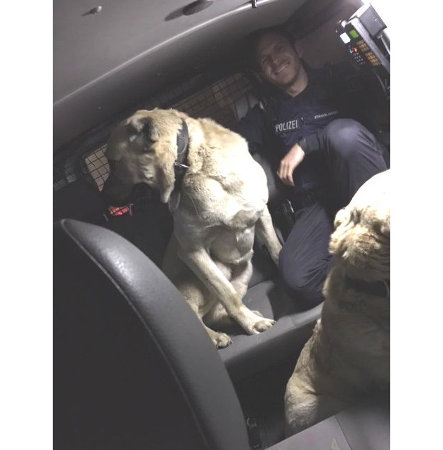 Wörth; Am 29.03.2017 wurde gegen 04:30 Uhr mitgeteilt, dass auf der BAB 65 im Bereich Dorschberg zwei größere Tiere laufen würden. Durch die Streifen konnten zwei ausgewachsene Kangal Hunde festgestellt werden. Ob die beiden die Vollsperrung auf der Autobahn für einen Ausflug nutzten, konnte auch nach intensiver Befragung nicht herausgefunden werden. Ein Beamter wurde jedoch als Schmuseobjekt von den Hunden dermaßen in Beschlag genommen, dass er erst durch Einsatz von Leckerli befreit werden konnte. Am Morgen konnte der Besitzer der Hunde herausgefunden werden und ihm die Hunde wohlbehalten übergeben werden.