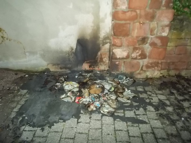 In einem Durchgang zwischen Quodgasse und Messplatz wurde ein Altpapierbehälter angezündet und schmolz hierdurch komplett. Durch die Hitzeentwicklung wurde noch die Außenmauer eines Anwesens beschädigt. Im Zuge der Fahndungsmaßnahmen wurden in der Nähe mehrere Personen angetroffen. Inwieweit hier ein Zusammenhang besteht, muss noch geklärt werden.