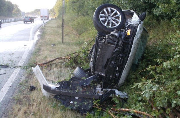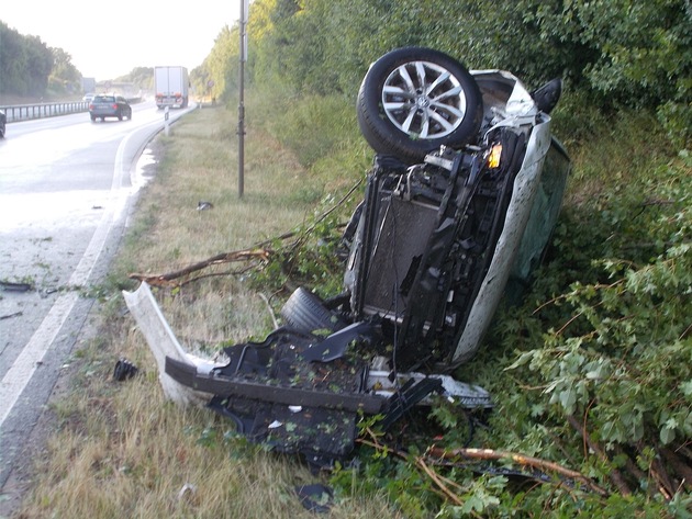 Am 22.07.2017, gegen 19:35 Uhr, ereigneten sich kurz nach einander zwei Unfälle wegen überhöhter Geschwindigkeit, in Verbindung mit Aquaplaning, auf der A 65 bei Insheim, Fahrtrichtung Ludwigshafen. Ein 38jähriger aus Landau geriet mit seinem Pkw VW Passat nach rechts in den Seitenstreifen, pflügte mehrere Sträucher um und blieb um 180 Grad gedreht auf der Fahrerseite liegen. Der Fahrer wurde dabei wohl nur leicht verletzt, wurde jedoch in ein nahgelegenes Krankenhaus verbracht, wo er zumindest über Nacht zur Beobachtung bleiben wird. An seinem Pkw entstand wirtschaftlicher Totalschaden in einer Höhe von ca. 20.000,-EUR. Der Pkw wurde abgeschleppt. Nahezu zeitgleich kam ein 36jähriger aus dem Landkreis Südliche Weinstraße wenige 100m vor der ersten Unfallstelle aus gleichen Gründen in's Schleudern, drehte sich mit seinem Pkw Daimler AMG um 180 Grad und beschädigte neben seinem Pkw auch ca. 8m Leitplanke. Geschätzte Gesamtschadenshöhe ca. 10.800,-EUR. Der Fahrer wurde nicht verletzt.