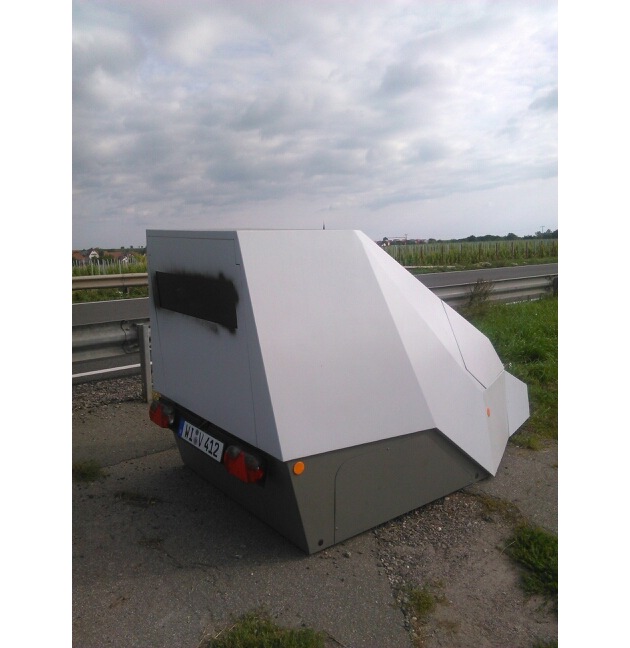 23./24. August 2017 Der am 22. August von der Polizei aufgestellte Blitzeranhänger wurde in der Nacht von Mittwoch auf Donnerstag von einer unbekannten Person unbrauchbar gemacht, indem die Frontscheibe mit schwarzer Farbe besprüht wurde (siehe Bild). Der Anhänger, ein sogenannter "Enforcement Trailer" stand an der Bundesstraße 272 zwischen Bornheim und dem Essinger Kreisel. Er wurde in Betrieb genommen, um die Verkehrssicherheit auf Außerortsstraßen, wo die folgenschwersten Unfälle zu verzeichnen sind, zu erhöhen. Die Geschwindigkeit ist nach wie vor die Unfallursache Nr. 1. Es werden Zeugen gesucht, die in der fraglichen Tatzeit verdächtige Personen am Blitzeranhänger gesehen haben. Hinweise nimmt die Polizei unter der Telefonnummer 06341- 2870 entgegen.