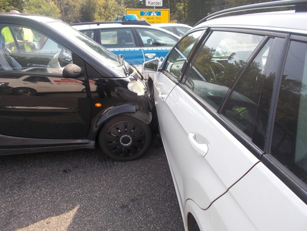 Wörth; Am 26.09.2017 kam es um 12:30 Uhr auf der B9 in Höhe der Kreuzung Langenberg zu einem Verkehrsunfall. Ein 27-jähriger PKW Fahrer befuhr die K15 von Schaidt und wollte in Richtung Hagenbach weiterfahren. Im Kreuzungsbereich missachtete er die Vorfahrt eines zu diesem Zeitpunkt in Richtung Kandel fahrenden 57-Jährigen. Durch den Zusammenstoß wurde der 57-Jährige leicht verletzt.
