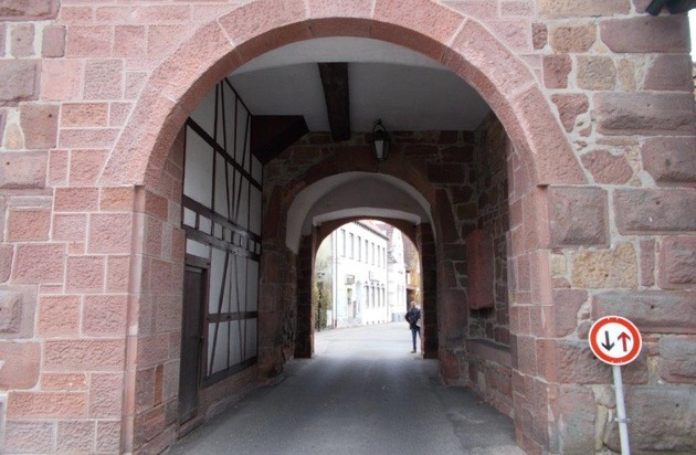 17. November 2017, 18.20 Uhr Der Wunsch des Billigheimer Bürgermeisters erfüllte sich bei der offiziellen Übergabe des Rankgerüsts vor dem Oberen Tor am Freitagmittag nicht. Nur sechs Stunden später fuhr eine Zugmaschine unter der Höhenbegrenzung durch, die zum Schutz des historischen Tores aufgebaut war und blieb leicht mit seinem Windabweiser an dem Tor hängen (siehe Bild). Es entstanden minimale Kratzspuren am Tor und der Verursacher fuhr weiter. Glücklicherweise konnte das Kennzeichen von einem Zeugen abgelesen werden, so dass die Polizei bei der Halterfirma in Mannheim die Ermittlungen nach dem Fahrer aufnehmen konnte.