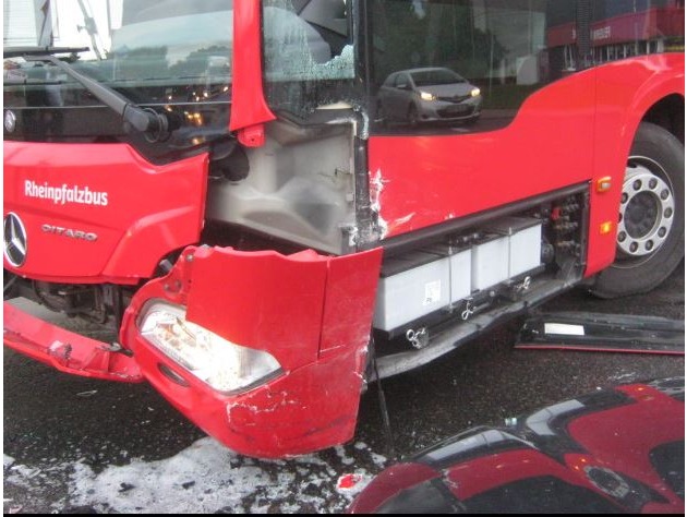 ***, den 06.10.2015, 18.05 Uhr*** Ein 39- jähriger Busfahrer war auf der Fahrt durch die Heinkelstraße und wollte nach rechts in die Industriestraße abbiegen. Zeitgleich bog ein unbekannter LKW- Fahrer von der Industriestraße kommend nach links in die Heinkelstraße ab. Durch den abbiegenden LKW war dem Busfahrer die Sicht auf die Industriestraße versperrt. Der Busfahrer bog nach rechts ab und kollidierte mit einem 39- jährigen PKW- Fahrer, der die Industriestraße in Richtung Innenstadt fuhr. Bei dem Zusammenstoß entstand ein Schaden von ca. 18.000 Euro, ein Beifahrer des PKW- Fahrers wurde schwer verletzt.