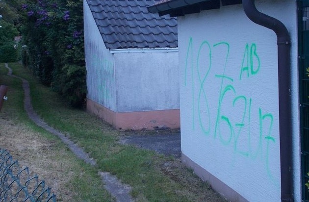 *, den 08.05.2016, 12.00 Uhr bis 10.05.2016, 08.00 Uhr* Unbekannte Täter beschädigten die rückwärtigen Hauswände von zwei Einfamilienhäusern in der Graf- Stauffenberg- Straße, der Schaden wird auf 100 Euro geschätzt.