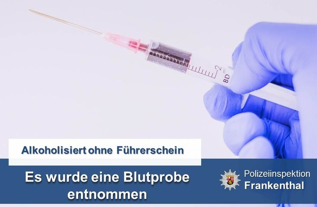 Am Mittwochabend fährt ein 20-jähriger Frankenthaler nach einem Streit mit seinem Pkw, obwohl er unter Alkoholeinfluss und vermutlich auch unter Betäubungsmitteleinfluss steht. Der 20-Jährige hat außerdem keinen Führerschein. Dem Beschuldigten wurde eine Blutprobe entnommen.