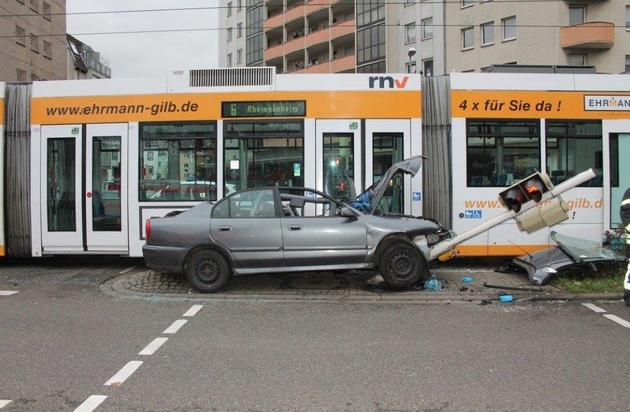 Am 05.02.16, gg. 16.05 Uhr, befuhr ein 33-jähriger Fahrzeugführer mit seinem Pkw die Saarlandstraße, aus Richtung Heinigstraße kommend in Richtung Mundenheim. Nach vorliegenden Zeugenaussagen wollte er in Höhe der Kreuzung Saarlandstraße/ Pestalozzistraße verbotswidrig nach links in Richtung Rottstraße abbiegen. Beim Abbiegevorgang übersah er die links versetzt und parallel fahrende Straßenbahn, Linie 6, und stieß mit dieser beim Abbiegen im Kreuzungsbereich zusammen. Eine Notbremsung durch den Straßenbahnführer konnte den Zusammenstoß nicht verhindern. Durch den Aufprall wurde der Pkw zur Seite geschoben und verkeilte sich zwischen Straßenbahn und Ampelmast. Der allein im Pkw befindliche Fahrzeugführer wurde im Pkw eingeklemmt und konnte erst durch den Einsatz der Berufsfeuerwehr Ludwigshafen mit Hilfe technischen Gerätes geborgen werden. Der 33-jährige Fahrzeugführer wurde schwerverletzt in die BGU Weitere Personen wurden bei dem Verkehrsunfall nicht verletzt.Ludwigshafen-Oggersheim zur ärztlichen Versorgung eingeliefert. Über die schwere der erlittenen Verletzungen können derzeit keine Angaben gemacht werden.