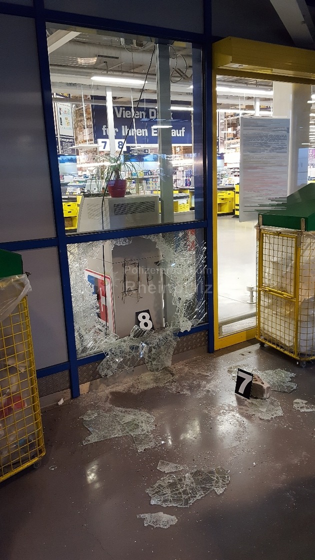 Unbekannte versuchten in der Nacht von Dienstag (01.05.2018, 21.35 Uhr) auf Mittwoch (02.05.2018, 1.15 Uhr) einen Geldautomaten in einem Großhandel (Metro) in der Oderstraße aufzuflexen. Zunächst warfen der/die Täter mit Backsteinen die Scheibe im Eingangsbereich ein. Anschließend versuchten der/die Täter den Geldautomaten aufzuflexen. Das Vorhaben scheiterte. Es entstand Sachschaden in noch unbekannter Höhe. Bargeld wurde nach derzeitigem Stand nicht entwendet. Sachdienliche Hinweise nimmt die Kriminalpolizei Ludwigshafen unter der Telefonnummer 0621/963-2773 oder per Email kiludwigshafen@polizei.rlp.de entgegen.