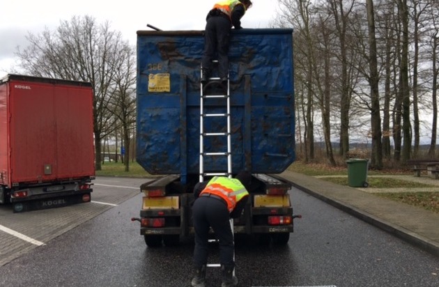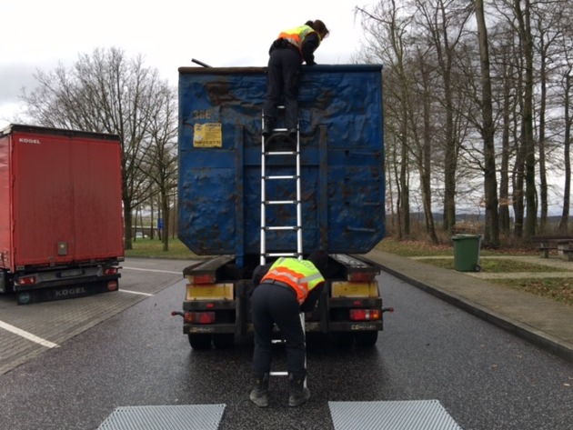 Insgesamt wurden während der fünfstündigen Kontrolle 34 Fahrzeuge überprüft, darunter 4 Gefahrgut- und 6 Abfalltransporte.