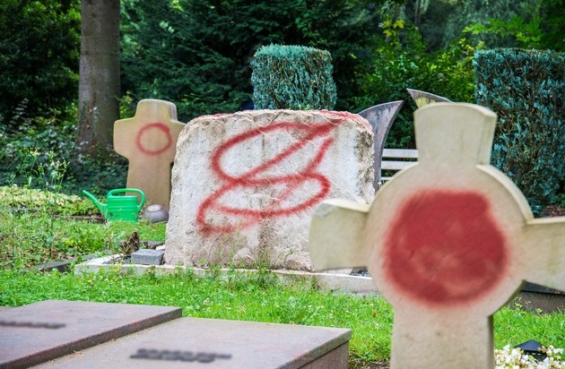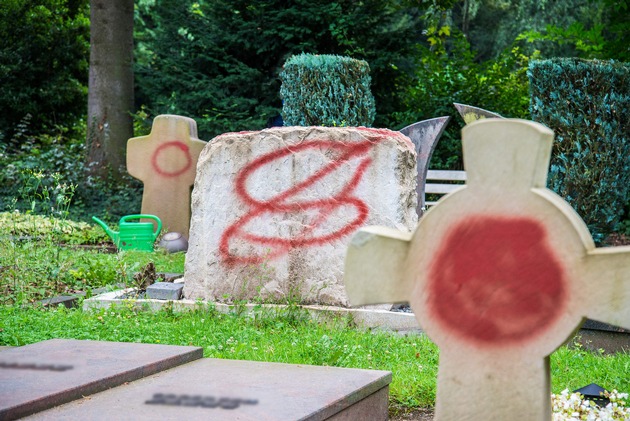 Unbekannte haben vermutlich in der vergangenen Nacht zahlreiche Grabsteine und Stelen mit roter Farbe besprüht. Zeugen hatten die Schäden am frühen Mittwochmorgen, 10. August, gemeldet.