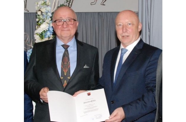 Das beigefügte Foto zeigt links EPHK Cremer und rechts Polizeipräsident Berg.