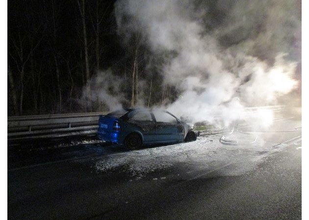 Beim Überholen auf der zweispurigen B9 in Höhe der Anschlussstelle "Rheinufer 2" verlor ein 33-jähriger Fahrzeugführer am Dienstag gegen 23:00 Uhr die Kontrolle über sein Auto. Der Wormser, der die B9 aus Richtung Ludwigshafen kommend befuhr, hatte einen PKW überholt und wollte vor diesem wieder auf die rechte Fahrspur einscheren. Dabei verlor er die Kontrolle über seinen Opel Astra, fuhr gegen die rechte Leitplanke und wurde dann zurück auf die Fahrbahn geschleudert, wo er nach 75 Metern zum Stehen kam. Da sofort Rauch aus dem Motorraum aufstieg, rette sich der Fahrer völlig unverletzt ins Freie. Kurz danach stand das Auto komplett in Flammen und brannte vollständig aus. Die B9 musste für die Löscharbeiten und die Dauer der Unfallaufnahme für 2 Stunden in Fahrtrichtung Worms vollgesperrt werden. Den Sachschaden schätzt die Polizei auf etwa 4000 Euro.