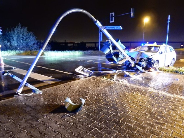 In der Nacht zum Dienstag gegen 04.00 Uhr wollte eine Streife der Polizeiinspektion Worms den Fahrer eines Toyota Auris in der Alzeyer Straße einer Verkehrskontrolle unterziehen, da er in Schlangenlinien fuhr. Dieser dachte jedoch nicht daran, auf die Anhaltesignale zu reagieren, sondern flüchtete mit hoher Geschwindigkeit in Richtung Worms-Pfeddersheim. In Höhe der Weinbrennerstraße fuhr er mit so starker Wucht gegen einen Ampelmast, dass dieser umknickte. Der Fahrer flüchtete zu Fuß. Bei der Untersuchung des Unfallautos fiel sodann auf, dass sich im Innern eine Preistafel eines Autohauses befand, womit auch der Grund für die vorherige Flucht gefunden sein dürfte: Das Fahrzeug war zuvor vom Gelände des Autohauses gestohlen und mit einem lettischen Kennzeichen versehen worden. Trotz einer sofort eingeleiteten Fahndung mit mehreren Streifenwagen sowie einem Diensthund konnte der Fahrer nicht aufgefunden werden.