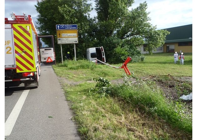 Mit leichten Verletzungen kam am Sonntag, gegen 18:30 Uhr, der 35-jährige Fahrer eines Kleinbusses davon. Der Mann aus dem Landkreis Bad Dürkheim war auf der B9 aus Richtung Mainz kommend unterwegs und kam in Höhe der Oberrheinstraße ohne Fremdeinwirkung von der Fahrbahn ab. Nachdem er durch mehrere Hecken am Fahrbahnrand gefahren und mit einer Schranke und einem Verkehrsposten kollidiert war, prallte er letztlich gegen einen Baum, wo sein Kleintransporter mit Totalschaden zum Stehen kam. Der Fahrer konnte sich noch selbstständig aus dem Auto befreien und wurde vor Ort medizinisch behandelt, bevor er ins Klinikum verbracht wurde. Wie er selbst an der Unfallstelle angab, war er hinter dem Steuer eingeschlafen. Daher wurde sein Führerschein sichergestellt und eine Strafanzeige wegen Gefährdung des Straßenverkehrs erstattet. Weiterhin fanden die Beamten in seinem Fahrzeug einen Elektroschocker. Dieser wurde ebenfalls sichergestellt. Den entstandenen Schaden schätzt die Polizei auf mindestens 20.000 Euro.