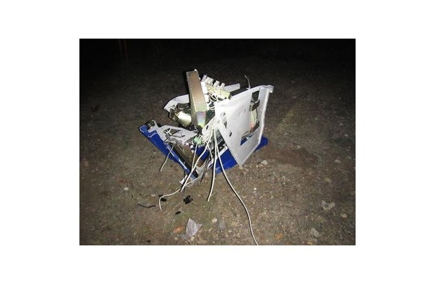 Am heutigen Donnerstag, um kurz vor 02:00 Uhr, meldeten sich mehrere Anrufer aus der Wormser Landstraße bei der Polizei. Ihnen waren drei vermummte Personen aufgefallen, die aktuell versuchten in die dortige Volksbankfiliale einzubrechen. Wie sich herausstellte, waren die Männer in den Vorraum der Bank eingedrungen. Dort hatten sie ein Seil um den Geldautomaten gelegt und diesen mit einem Geländewagen aus der Verankerung gerissen. Anschließend zogen sie diesen aus der Bank über eine Strecke von 300 Metern bis in das angrenzende freie Feld. Dort wurde der völlig zerstörte Geldausgabeautomat zurückgelassen. Noch im Automat befand sich die unversehrte Geldkassette mit mehreren 10.000 Euro Bargeld. Der entstandene Sachschaden liegt nach ersten Einschätzungen bei weit über 100.000 Euro. Von den Tätern fehlt bislang jede Spur. Da diese vermummt waren, liegt der Polizei nur eine vage Beschreibung vor. Zwei der Täter trugen graue Kapuzenpullover und Tücher über dem Mund. Beide waren ca. 180cm groß. Bei dem Fahrzeug soll es sich um einen silbernen SUV oder Pick Up handeln. Den Fahrer konnten die Zeugen nicht beschreiben. Hinweise nimmt die Kriminalpolizei Worms unter der Rufnummer 06241-8520 entgegen.
