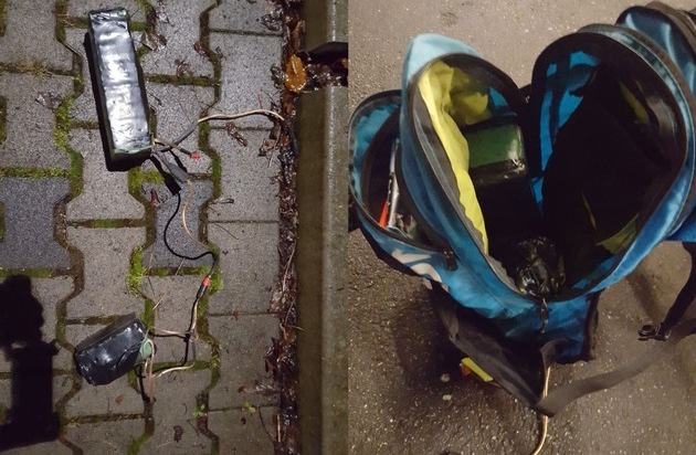 Ein verdächtiger Gegenstand rief die Polizei Worms am gestrigen Mittwoch im Backsteinweg auf den Plan. Eine Angestellte des EDEKA-Marktes hatte gegen 19:15 Uhr einen Rucksack mit heraushängenden Kabeln im Eingangsbereich festgestellt. Dies kam ihr verdächtig vor, weshalb sie die Polizei alarmierte. Als die Beamten vor Ort eintrafen, machte auch plötzlich der Eigentümer des Gepäckstücks, ein 33-jähriger Mann aus Osthofen, auf sich aufmerksam. Zu den mysteriösen, aus den dem Rucksack hängenden Kabeln befragt, gab er an, dass es sich dabei um einen Akku für sein Fahrrad handeln würde. Dabei wurde er sofort aggressiv, verweigerte die Angaben seiner Personalien und wollte sich einer Kontrolle entziehen. Er wurde festgenommen und anschließend auf die Wache verbracht. Dabei wurde ein 25-jähriger Polizeibeamter leicht an der Schulter verletzt. Der verdächtige Rucksack wurde schließlich durch die hinzugerufenen Delaborierer untersucht und als ungefährlich eingestuft. Es befanden sich tatsächlich Fahrradakkus darin, die der Eigentümer aneinander geschraubt hatte. Eine Grund für die außergewöhnlichen Bastelarbeiten konnte dieser nicht nennen.