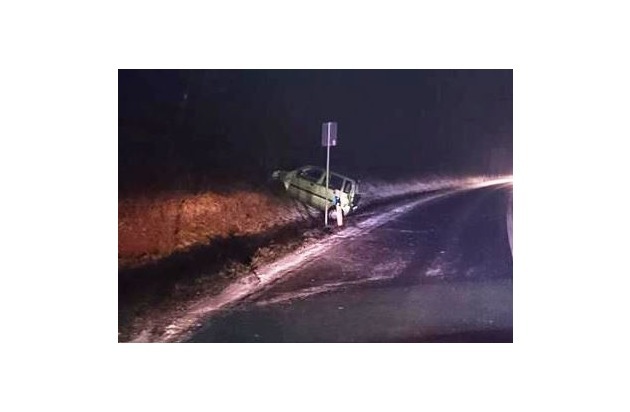 Am 17.02.18 gegen 22:15 Uhr kam es Ortsausgang Eisenberg in Richtung Ramsen auf der L395 zu einem Verkehrsunfall bei dem sich der alleinbeteiligte 25 jährige Fahrer leicht verletzte. Dieser hatte zuvor ein Fahrzeug überholt und kam dann aufgrund nicht angepasster Geschwindigkeit auf der winterglatten Fahrbahn nach links von der Fahrbahn ab und kam im Straßengraben zum Stehen.