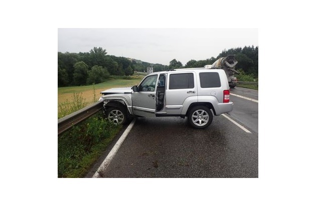 Ein 49-jähriger Pkw-Fahrer befuhr die B41 von der Autobahn kommend in Richtung Kirn. Auf Höhe der Ausfahrt Waldböckelheim/Sportplatz kam der 49-Jährige aufgrund von nicht angepasster Geschwindigkeit auf regennasser Fahrbahn ins Schleudern. Der Pkw des Mannes geriet nach links auf die Gegenfahrbahn und stieß dort gegen die Schutzplanke. Ein 50-jähriger Lkw-Fahrer befuhr zu diesem Zeitpunkt die B41 in die Gegenrichtung. Er konnte dem Pkw des 49-Jährigen nicht mehr ausweichen und kollidierte mit diesem. Hierbei wurden der Pkw- und der Lkw-Fahrer jeweils leicht verletzt. Die beiden unfallbeteiligten Fahrzeuge wurden stark beschädigt und mussten abgeschleppt werden (Sachschadenshöhe insgesamt zirka 15.000,00 Euro). Der Schaden an der Schutzplanke wurde auf zirka 2.000,00 Euro geschätzt.