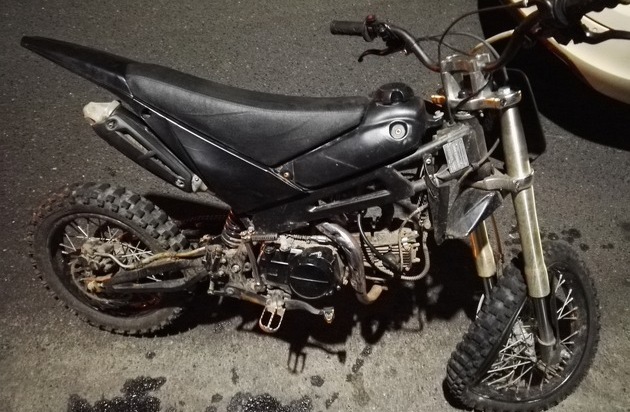 Das Zweirad ist nicht zugelassen, die FIN ist nirgendwo hinterlegt und es gibt bis jetzt keine Hinweise auf einen Eigentümer.Vermutlich handelt es sich um eine 50 cm³-Crossmaschine für Hobbyzwecke.