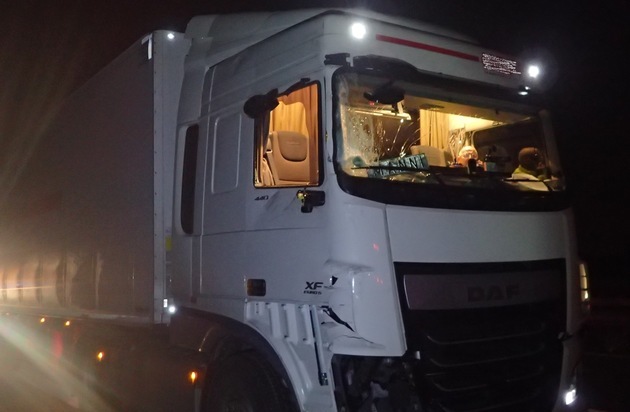 Trotz hohem Sachschaden nahm ein Unfall ein glimpfliches Ende, bei dem ein Sattelzug auf der A 61 bei Bingen auf einen Sicherungsanhänger der Autobahnmeisterei prallte. Am 16.12.2015 gegen 02:38 Uhr erreichte dort der 69-jährige Fahrer eines Sattelzugs, der die A61 in Richtung Ludwigshafen befuhr, den Bereich einer Nachtbaustelle. Kurz vor Erreichen eines auf der rechten Fahrspur stehenden beleuchteten Warnanhängers der Autobahnmeisterei, kam er zunächst nach links Richtung Mittelleitplanke von seiner Fahrspur ab. Beim Versuch gegenzusteuern, zog er den Sattelzug zu weit nach rechts. Hierbei kam er jedoch zu weit nach rechts und kollidierte mit dem Warnanhänger. Durch die Wucht des Aufpralls wurde dieser rund 25 Meter nach vorne gegen einen an der rechten Schutzplanke stehenden LKW der Autobahnmeisterei geschleudert. In diesem befanden sich zwei Mitarbeiter der Autobahnmeisterei, welche glücklicherweise nicht verletzt wurden. Der Sattelzug des ebenfalls unverletzten 69-Jährigen aus dem Raum Bielefeld kam nach ca. 120 Metern zum Stehen. An der neuwertigen Sattelzugmaschine entstand ein geschätzter Sachschaden in Höhe von ca. 50.000 Euro. Der Warnanhänger wurde total beschädigt. Der Sachschaden beträgt ca. 20.000 Euro. Den Schaden am LKW der Autobahnmeisterei schätzt die Polizei auf ca. 5.000 Euro. Zugmaschine und Anhänger mussten Abgeschleppt werden. Die Polizei ermittelt nun, wie es zu dem Unfall kommen konnte.