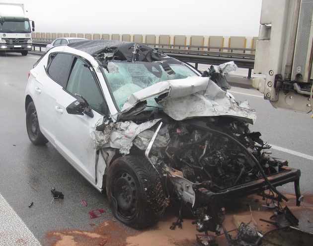 Der Mann aus Ludwigshafen fuhr heute gegen 11:30 Uhr mit seinem PKW auf der A 61 in Richtung Speyer auf der Pfeddersheimer Talbrücke mit seinem PKW unter den Anhänger eines Lastkraftwagens. Er erlitt vermutlich schwere Verletzungen und wurde vom Rettungsdienst in eine Ludwigshafener Klinik gebracht. Der 28-jährige Fahrer des Lasters wurde nicht verletzt. Die Wucht des Aufpralls war so groß, dass die Hinterachse des Anhängers beschädigt und die Anhängerdeichsel völlig verbogen wurde. Den Sachschaden schätzt die Polizei auf mindestens 8.000 Euro. Am PKW des 32-Jährigen dürfte ein Totalschaden in Höhe von ca. 15.000 Euro entstanden sein. Sowohl der PKW als auch der Anhänger waren durch den Unfall nicht mehr fahrbereit und mussten abgeschleppt werden. Zu dem Stau kam es wegen einer Tagesbaustelle zwischen dem Anschluss Worms und dem Parkplatz Erpelrain. Durch den Unfall und die folgenden Bergungs- und Aufräumarbeiten bildete sich bis ca. 13:30 Uhr ein weiterer Rückstau bis ca. in Höhe der Anschlussstelle Worms-Mörstadt. Derzeit ist die Fahrbahn wieder frei. Die Polizei ermittelt nun, welche Ursache zu dem Unfall geführt hat und warum der PKW-Fahrer den Stau nicht erkannt hat.