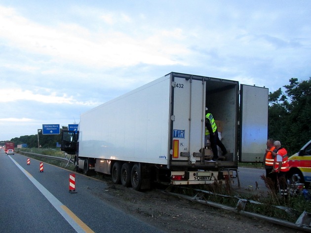 Eine Auswertung der Fahrerdaten ergab keine Auffälligkeiten. Der 56-Jährige hat alle Pausen korrekt eingehalten und kann sich die plötzliche Müdigkeit selbst nicht erklären. Es entstand Sachschaden in Höhe von 100.000 Euro.