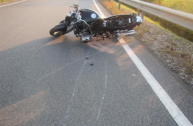 Am Samstagnachmittag gegen 18:00 Uhr stürzte ein 81-jähriger Motorradfahrer aus der Nähe von Bad Sobernheim in der westlichen Ausfahrt der BAB 61 in Richtung Bad Kreuznach. Beim Zusammenstoß mit der Schutzplanke zog er sich tödliche Verletzungen zu. Der Unfall war von anderen Verkehrsteilnehmern beobachtet und über Notruf gemeldet worden. Die Autobahnpolizei und der von der Staatsanwaltschaft beauftragte Gutachter stellten keine Hinweise auf technische Mängel am Motorrad oder eine Beteiligung anderer Personen fest. Die Aussagen der Unfallzeugen decken sich mit diesen Feststellungen und berichten von einer plötzlichen unsicheren Fahrweise des Motorrades kurz vor dem Unfall.