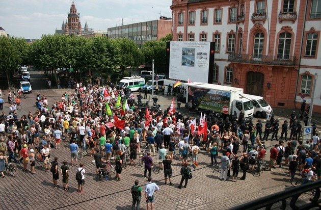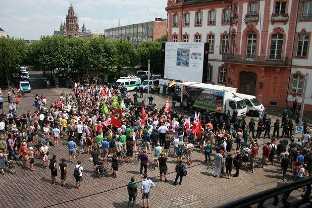 POL-PPMZ: (Mainz) NPD-Kundgebung und hitzige Gegendemonstration