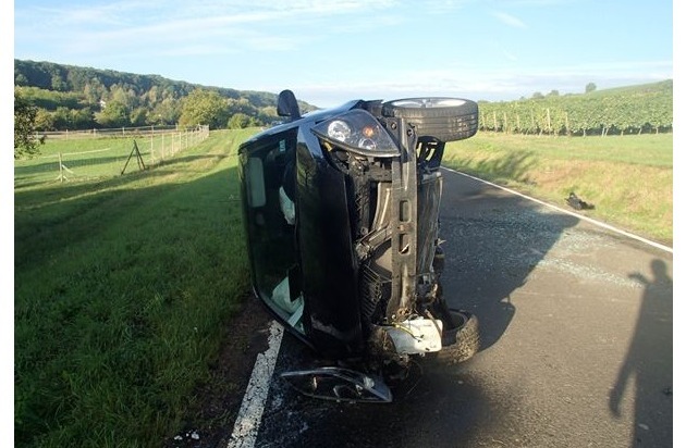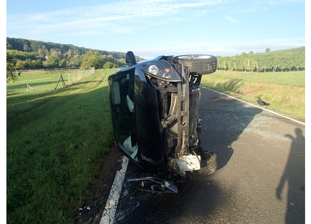 POL-PPMZ: Jugenheim, Mit Fahrzeug überschlagen