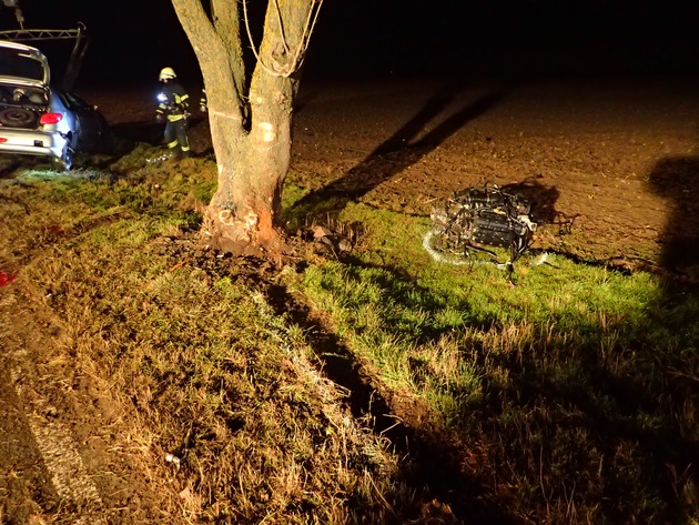 Am 10.02.2018, gegen 23:00h befährt ein 23-jähriger Mann aus Köngernheim die B 420 vom Dexheimer Kreisel kommend in Richtung Wörrstadt. Auf dem Streckenabschnitt zwischen dem Kreisverkehr und dem Parkplatz der ehemaligen US Kaserne gerät der PKW-Fahrer, aus bislang ungeklärter Ursache, zunächst ins Schleudern, driftet nach rechts von der Fahrbahn und stößt im angrenzenden Grünstreifen, mit seiner vorderen linken Fahrzeugseite gegen einen Straßenbaum. Durch die Wucht des Aufpralls, wird der Fahrer aus seinem PKW geschleudert und kommt schwerstverletzt auf der Fahrbahn der B 420 zum Liegen. Beim Aufprall wird der Motor aus dem Motorraum des PKW gerissen und bleibt auf dem Acker liegen. Die Karosserie des Kleinwagens wird völlig zerstört. Der Fahrer wird mit lebensbedrohlichen Verletzungen in die Uni-Klinik Mainz verbracht. Zur Klärung der Unfallursache wurde ein Unfallsachverständiger hinzugezogen. Durch das Unfallgeschehen war die Fahrbahn der B 420 für 4 Stunden gesperrt.