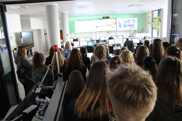 Für kurze Zeit konnten die Besucherinnen und Besucher auch in die Führungszentale der Polizei schauen und sich über die Arbeit der Beamten dort informieren. Sie erfuhren viel über die Vielfalt der Notrufe und die ersten polizeilichen Maßnahmen, die dann von dort initiiert werden.