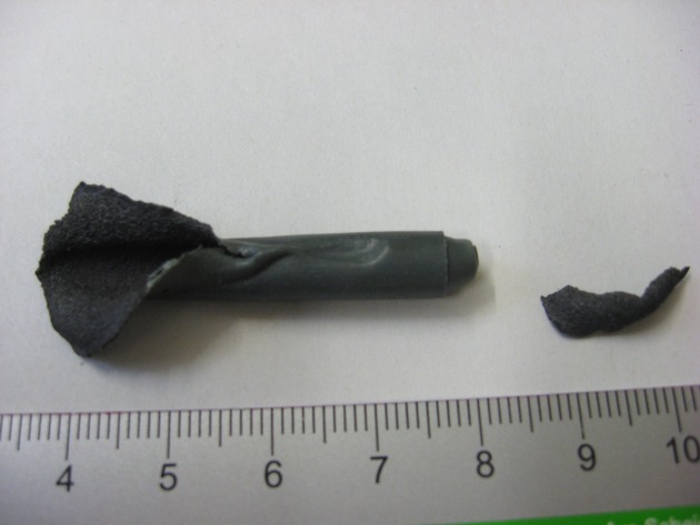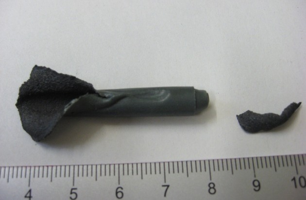 Vermutlich in der Zeit von Montag, 10.07.2017 bis Montag, 24.07.2017, 15:00 Uhr, schoss ein bislang unbekannter Täter auf den Rollladen eines Hauses in der Schneiderstraße. Neben der Sachbeschädigung an dem rückwärtig gelegenen Rollladen wurden zwei olivgrüne Plastikteile mit Schwarzpulverresten vorgefunden. Wer kann Hinweise zu dem abgebildeten "Projektil" geben. Telefon: 02741/9260 oder per Mail kibetzdorf@polizei.rlp.de