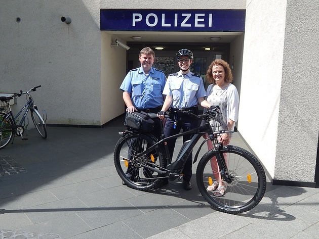 Ein neues Einsatzmittel konnte die Polizei Betzdorf jetzt in Empfang nehmen. Seit neuestem steht der Polizeiinspektion nun auch ein E-Bike zur Verfügung. Genutzt wird es überwiegend von Polizeioberkommissarin Silke Gräbener, die seit kurzem ihren Dienst als Bezirksbeamtin in Herdorf versieht. " Wir freuen uns, dass wir die längere Zeit nicht besetzte Stelle in Herdorf jetzt mit Frau Gräbener wieder besetzen konnten, so dass wir für die Bürgerinnen und Bürger in Herdorf wieder eine Ansprechpartnerin vor Ort haben, die nicht nur mobil, sondern auch umweltfreundlich und bürgernah ihren Dienst in Herdorf versehen kann", so der stellvertretende Leiter der PI Betzdorf, Polizeihauptkommissar Jörg Mohn. Erstmalig im Einsatz mit dem E-Bike wird Polizeioberkommissarin Gräbener am Sonntag bei der Veranstaltung "Siegtal Pur" sein.