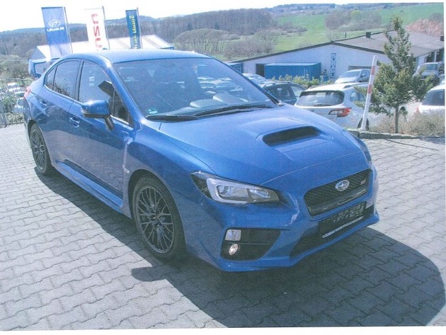 ***Zeugen gesucht*** In der Zeit von Samstag, 25.07.2015, 16:00 Uhr auf Montag, 27.07.2015, 07:00 Uhr, ist vom Gelände des Subaru Autohauses in Herschbach Oberwesterwald ein Pkw entwendet worden. Dabei handelte es sich um einen gebrauchten aber hochwertigen Subaru WRX in blau. Das Fahrzeug ist aus dem Rally Sport bekannt. Der Wert des Fahrzeuges dürfte bei über 30.000 Euro liegen. Weiterhin wurden zwei Kennzeichensätze entwendet. Eventuell wurde damit das entwendete Fahrzeug ausgestattet und vom Hof des Autohauses entfernt.