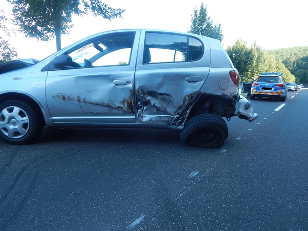 Am Mittwoch, dem 05.08.2015 kam es um 17:40 Uhr auf der B 54 zu einem Unfall im Begegnungsverkehr. Ein 73-jähriger Pkw-Fahrer aus Aarbergen fuhr, aus bisher unbekannter Ursache, plötzlich auf die Gegenfahrbahn und stieß mit dem entgegenkommenden Pkw zusammen. An beiden Fahrzeugen entstand hoher Sachschaden. Die 67-jährige Pkw-Fahrerin, des geschädigten Pkw´s wurde dabei leicht verletzt.