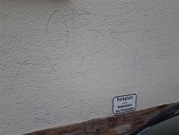 POL-PDMT: Farbschmierereien an der Außenfassade des Finanzamtes