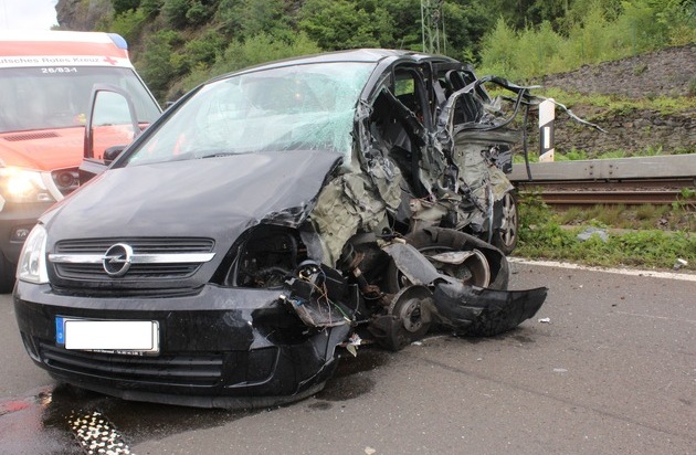 Bei einer Kollision zwischen einem englischem Reisebus und einem Pkw aus dem Rhein -Hunsrück-Kreis wurden am gestrigen Mittwoch 3 Personen verletzt - eine davon schwer. Der Verkehrsunfall ereignete sich gegen 14.46 Uhr auf der Bundesstraße 9 in Höhe der Ortslage St. Goar / Fellen. Der Reisebus war auf der B 9 in Richtung Boppard unterwegs, als er an der Unfallstelle mit dem entgegenkommenden Pkw kollidierte. Durch die Wucht des Aufpralls drehte sich der Pkw mehrfach um die eigene Achse, bevor er nach einer Kollision mit der Schutzplanke endgültig zum Stehen kam. Die drei Insassen des Pkw wurden dabei verletzt. Der Fahrer erlitt schwere Verletzungen und musste mittels Rettungshubschrauber in ein Krankenhaus verbracht werden. Am Fahrzeug entstand wirtschaftlicher Totalschaden. Der Bus wurde vorne links beschädigt. Die B 9 war für ca. 1 Stunde voll gesperrt. Zeugen, die sachdienliche Angaben zum Unfallhergang machen können, mögen sich bitte mit der Polizeiinspektion Boppard, Tel.: 06742-8090, in Verbindung setzen.