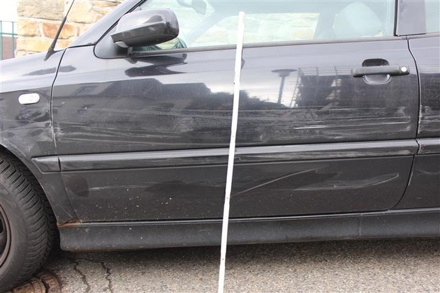 Am Freitag, dem 23.03.2018 gegen 15:30 Uhr, wurde in der Balthasar-Neumann-Straße ein geparkter VW Golf-Cabriolt an der Fahrerseite von einem vorbeifahrenden Pkw erheblich beschädigt. Die gesamte Fahrzeugseite wurde eingedrückt und verkratzt. Bei dem flüchtigen Fahrzeug soll es sich eventuell um einen dunkelblauen Dacia gehandelt haben.