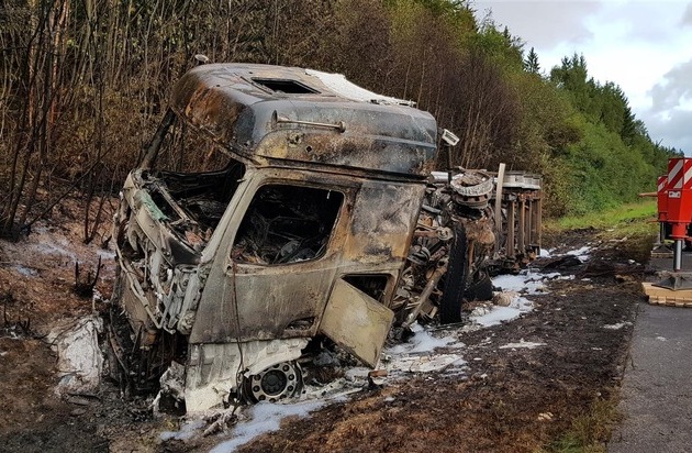 POL-VDKO: Gefahrgutunfall auf der A 61 - Ethanol-Laster abgebrannt