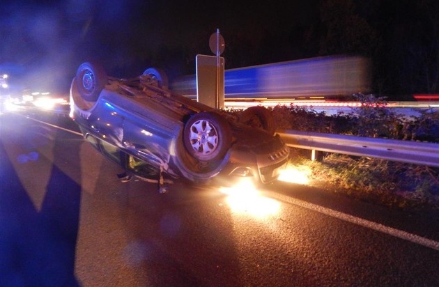 Ein 60-jähriger Pkw-Fahrer aus dem Landkreis Limburg-Weilburg befuhr mit seinem Pkw die A 3 in Richtung Köln. Im Baustellenbereich in Höhe der Gemarkung Nentershausen kam er mit dem rechten Vorderrad seines Pkw über die Fahrbahntrennung und überschlug sich anschließend. Das Fahrzeug rutschte über das Dach gegen die Mittelschutzplanke und kam dort erheblich beschädigt zum Stehen. Der Gesamtsachschaden wird auf ca. 11000 EUR geschätzt. Der Fahrer wurde nur leicht verletzt. Bei der Unfallaufnahme wurde Alkoholeinwirkung festgestellt. Daher wurde ein Blutentnahme angeordnet und der Führerschein sichergestellt.