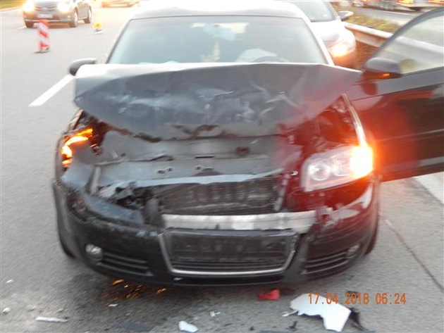 Am 17.04.2018, um 05:42 Uhr, kam es auf der BAB A 48, Fahrtrichtung Trier, in Höhe der Gem. Weitersburg zu einem Verkehrsunfall mit insgesamt 5 beteiligten Fahrzeugen. Dabei wurden 2 Personen leicht verletzt. Der Gesamtsachschaden wird auf ca. 35000 EUR geschätzt. Der 68-jährige Führer eines Kleintransporters versuchte einem vorausfahrenden und verkehrsbedingt abbremsenden Pkw nach rechts auszuweichen. Dabei kollidierte er mit dem Heck dieses Fahrzeuges und gleichzeitig mit einem rechts von ihm fahrenden weiteren Kleintransporter. Ein nachfolgender Pkw-Fahrer konnte ebenfalls nicht mehr rechtzeitig abbremsen und fuhr auf einen vorausfahrenden Pkw auf. In diesen beiden Pkw wurden die Insassen leicht verletzt. 3 Fahrzeuge waren nicht mehr fahrbereit und mussten abgeschleppt werden.