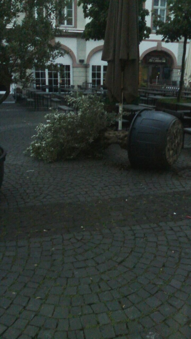 Einen mehrere 100 Kilogramm schweren Olivenbaum, der auf dem Koblenzer Plan steht, haben Unbekannte in der vergangenen Nacht (1./2. August 2017) umgeschmissen.