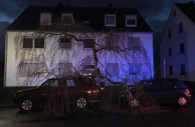 In den frühen Morgenstunden des heutigen Tages, 03.01.2018, zog der erste Sturm des Jahres über den Bereich des Polizeipräsidiums Koblenz. In den Höhenlagen von Eifel, Hunsrück und Westerwald sorgten mehrere umgestürzte Bäume für erhebliche Verkehrsbeeinträchtigungen. Einige Verkehrsunfälle wurden gemeldet, die aber, abgesehen von den Sachschäden, glimpflich ausgingen. Eine genaue Schadensbilanz liegt derzeit noch nicht vor.