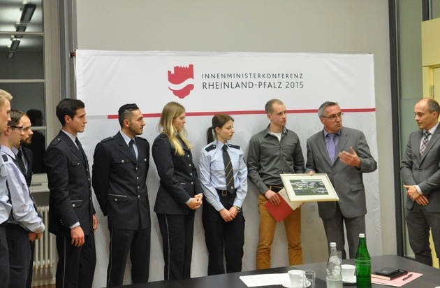 Studierende der Hochschule der Polizei trafen sich im Innenministerium gemeinsam mit dem Leiter der Hochschule, Friedel Durben und dem Ausbildungsreferenten Michael Thönnes zu einem Gespräch mit Staatssekretär Günter Kern.