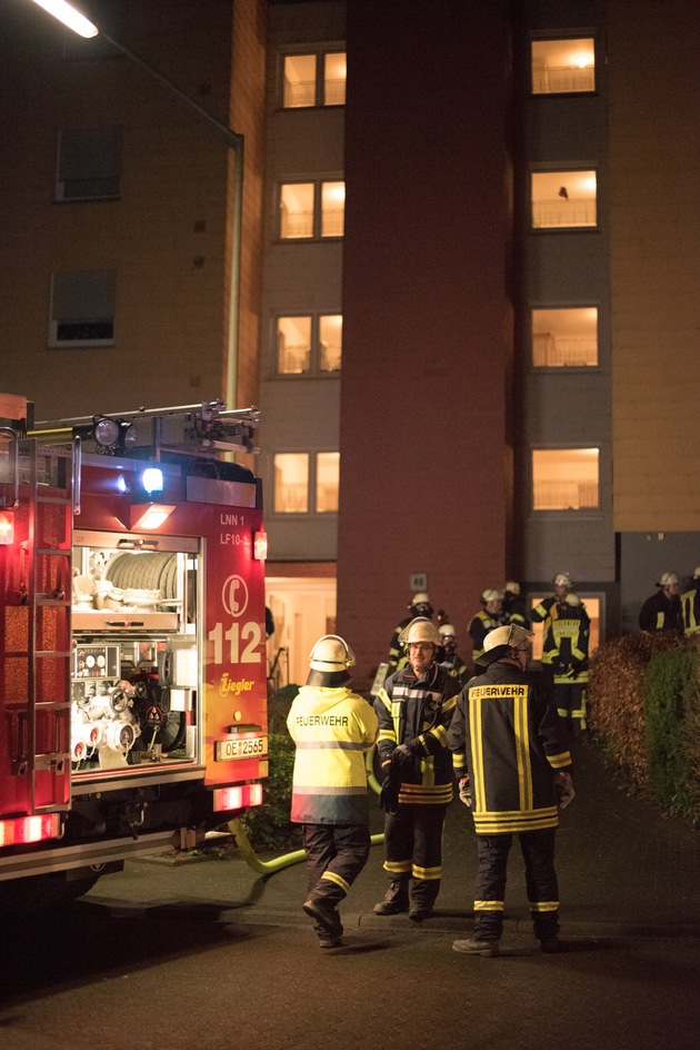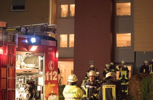 Eine böse Überraschung erlebte eine Dame, als sie in der Nacht vom ersten auf den zweiten Weihnachtsfeiertag gegen 0:45 Uhr nach Hause kam. Als sie die Wohnungstür im 2. Obergeschoss öffnete, kam ihr dichter Rauch aus ihrer Wohnung entgegen. Geistesgegenwärtig schloss sie sofort die Tür und verhinderte dadurch, dass sich der Rauch im gesamten Treppenhaus ausbreitete. Weitere Personen hielten sich nicht in der Wohnung auf. Die Feuerwehr evakuierte zunächst das Wohnhaus, in dem mehr als zwei Dutzend Wohneinheiten untergebracht sind. Teilweise standen einige Hausbewohner schon auf den Fluren oder vor dem Haus. Parallel drang die Feuerwehr unter Atemschutz in die Brandwohnung ein. Hier stelle man allerdings kein offenes Feuer sondern lediglich eine sehr starke Verrauchung fest. Die Wohnung wurde zunächst gelüftet und nach Brandnestern abgesucht. Danach wurde sichtbar, das Einrichtungsgegenstände und Teile der Decke geschmolzen waren und die Wohnung stark verrußt war. Da Feuer war nach dem Ausbruch auf Grund von Sauerstoffmangel offensichtlich von selbst wieder erloschen. Die Brandwohnung selbst ist zunächst nicht bewohnbar, die Dame kam bei Freunden unter. Die anderen Hausbewohner konnten in ihre Wohnungen zurück, verletzt wurde niemand. Die Feuerwehr Lennestadt war mit den Löschgruppen Altenhundem, Meggen, dem Einsatzleitwagen aus Maumke und 40 Kameraden im Einsatz. Zudem war ein Rettungswagen und Notarzt vor Ort. Über die Brandursache und Schadenhöhe liegen noch keine Informationen vor.