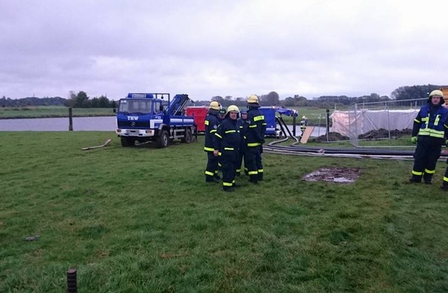 Mehrere Fachgruppen Wasserschaden/Pumpen des THW unter Federführung des THW Ortsverbandes Elmshorn, unterstützt durch die Freiwilligen Feuerwehren von Tangstedt und Quickborn sind seit Sonnabend im Einsatz bei Wedel an der Elbe. Grund ist der Ausfall einer Pumpe am Wedler Sperrwerk. Mit den THW Großpumpen aus Elmshorn, Pinneberg und Segeberg, hauptsächlich mit 2 Pumpen mit Minutenpumpleistung von jeweils 5.000 Litern und einer Großpumpe mit einer Leistung von 15.000 Litern pro Minuten sowie mit kleineren Schmutzwasserpumpen aber auch mit einer 5.000 L/m Feuerwehrpumpe das Wasser aus der Binnenelbe über den Deich in die Elbe gepumpt. Es drohe die Überflutung landwirtschaftlicher Flächen. Der anhaltende Regen habe für eine weitere Verschärfung der Lage gesorgt, hieß es. Inzwischen sei die Plantage eines Altländer Obstbauern überflutet. Es drohe empfindlicher Sachschaden. "Menschen seien allerdings nicht in Gefahr", betonte ein Sprecher der Einsatzkräfte amfrühen Sonntagmorgen. Die ausgefallene Hochleistungspumpe am Sperrwerk sei normalerweise dafür da, das Wedler Hinterland zu entwässern. Feuerwehr und Technisches Hilfswerk sind seit Sonnabendmittag vor Ort. Der Einsatz wird mindestens bis Montagmittag dauern.