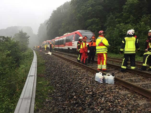 Parallel zu den rettungsdienstlichen Maßnahmen wurde die Bahnstrecke durch Einheiten der Feuerwehr freigeräumt und wieder befahrbar gemacht.
