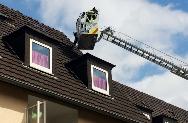 Die Drehleiter der Feuerwache und die Löschgruppen Lendringsen rückten gegen 14 Uhr zum Tulpenweg aus. Hier hatte eine Windhose die Dächer von insgesamt sechs Wohnhäusern beschädigt. Aus dem Korb der Drehleiter heraus entfernten die Einsatzkräfte lose Dachpfannen vom Dach. Zur Sicherheit wurde der direkte Bereich um die Wohnhäuser abgesperrt.
