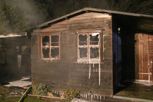 Ein aufmerksamer Nachbar hatte in der Nacht von Montag auf Dienstag in der Erich-Kästner-Straße in Lendringsen die brennende Gartenhütte im Nachbargarten gesehen und umgehend die Feuerwehr alarmiert. Da zunächst von einem Kleinbrand ausgegangen wurde, wurde das HLF der Feuer- & Rettungswache alarmiert. Bereits auf der Anfahrt war jedoch aufgrund des Feuerscheins erkennbar, dass es sich mitnichten um einen Kleinbrand handelt, die Gartenhütte stand im Vollbrand.