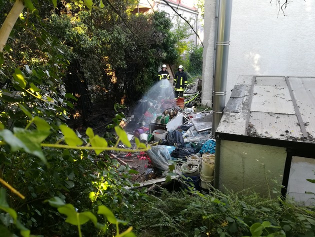 Brennender Unrat an einem Gebäude, so lautete die Einsatzmeldung für die Feuerwehr Menden am Samstagabend. Mehrere Anrufer hatten sich bei der Kreisleitstelle gemeldet und die Situation geschildert, demnach bestand die Gefahr, dass das Feuer auf das angrenzende Wohnhaus und eine Garage übergreifen könnte. Die Einsatzkräfte setzten umgehend zwei Trupps unter Atemschutz mit je einem Strahlrohr ein. Diese Maßnahme zeigte schnell Wirkung, bereits nach wenigen Minuten konnte "Feuer unter Kontrolle" gemeldet werden. Nach rund 45 Minuten waren auch die Nachlöscharbeiten beendet und die Feuerwehr konnte wieder einrücken. Im Einsatz befanden sich der Löschzug der Feuerwache sowie eine Meldegruppe des Löschzuges Mitte der Freiwilligen Feuerwehr.